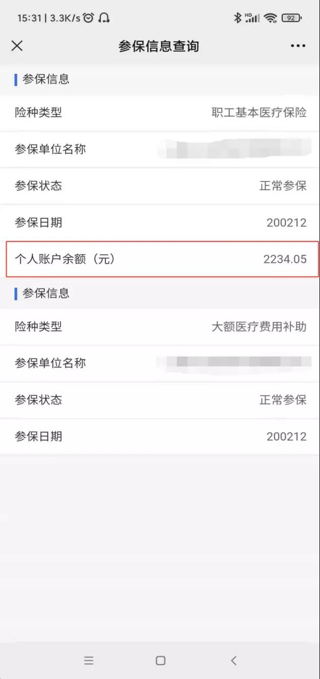 第三步 “參保信息查詢”頁面會詳細記錄個人參保信息,職工基本醫(yī)療保險個人賬戶余額會顯示在該條參保信息下的***后一行。