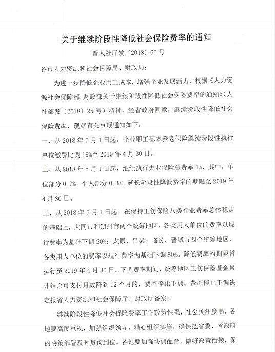 關(guān)于繼續(xù)階段性降低社會(huì)保險(xiǎn)費(fèi)率的通知